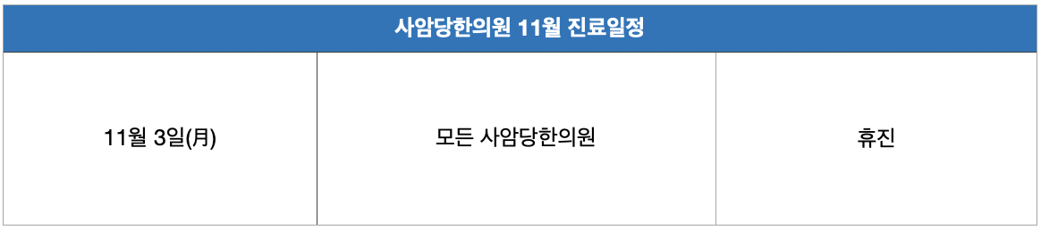 11월 3일(月)은 모든 사암당한의원이 휴진합니다.