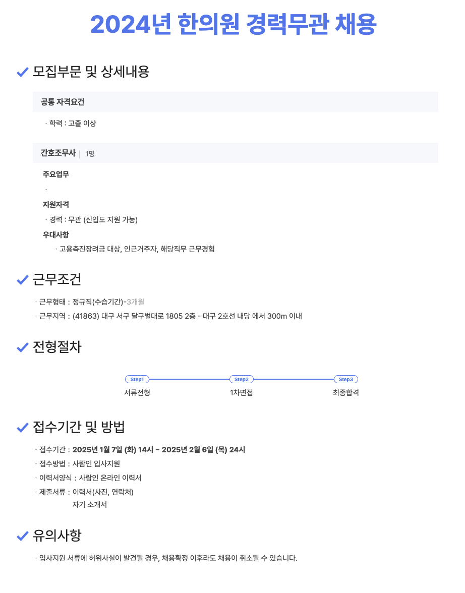 (마감) 사암당한의원 대구분점 경력무관 정규직 채용 안내