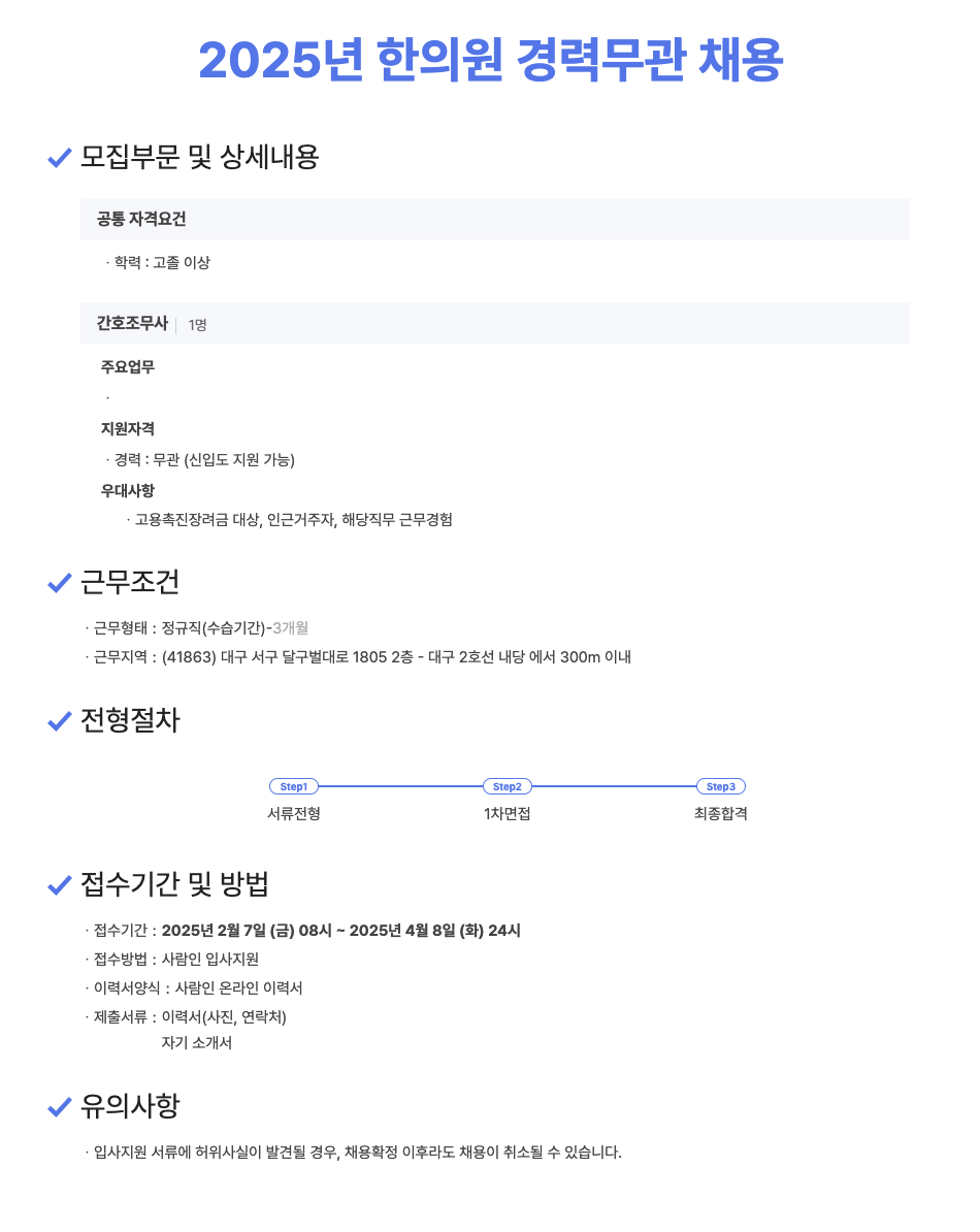 (마감) 사암당한의원 대구분원 2025년 한의원 경력무관 채용